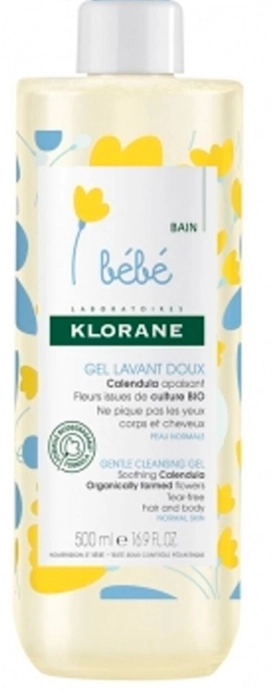 El Gel limpiador suave para bebés de Klorane limpia, calma y protege el delicado cabello y la piel de los bebés sin irritar los ojos.