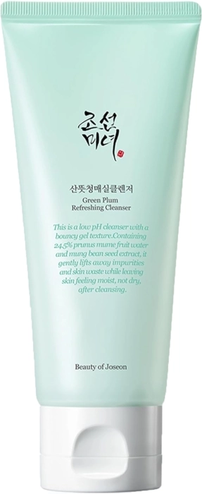 El Limpiador Green Plum de Beauty Of Joseon es un limpiador vegano que proporciona una limpieza refrescante e hidratante. Su fórmula suave y ligeramente ácida incluye extractos de semillas de ciruela y haba mungo, adecuado para todo tipo de piel. Este producto elimina impurezas y ayuda a mantener el equilibrio de la piel, promoviendo luminosidad y frescura. Tiene una textura en gel que facilita la aplicación y genera una rica espuma al ser frotado con las manos húmedas, permitiendo un enjuague con agua tibia para un rostro limpio y revitalizado.