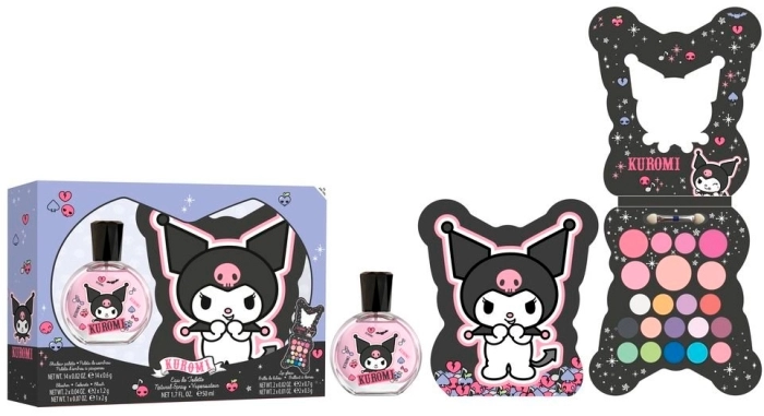 Set infantil de Kuromi que incluye una fragancia Eau de Toilette de 50 ml con aroma suave y una paleta de maquillaje en tonos divertidos. Ideal para regal