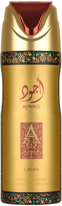 Desodorante perfumado en aerosol Ajwad de Lattafa Perfumes.