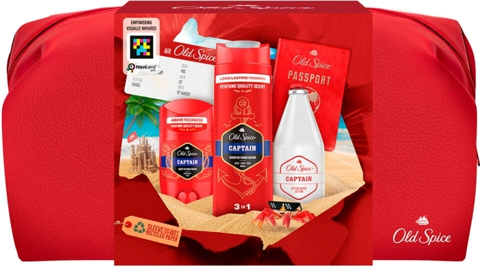 El set contiene: Set Old Spice Captain Gel + Shampoo 250ml + Deo Stick 50ml + After Shave Lotion 100ml