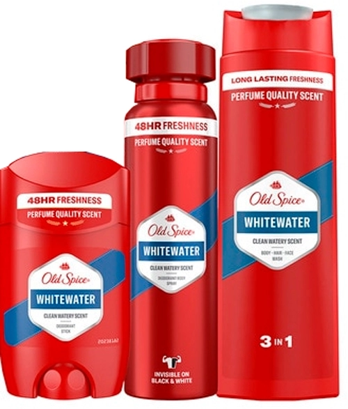 Disfruta de la frescura duradera con el set Old Spice White Water, que incluye desodorante en stick, spray y gel. Perfecto para mantener tu higiene y confianza todo el día.