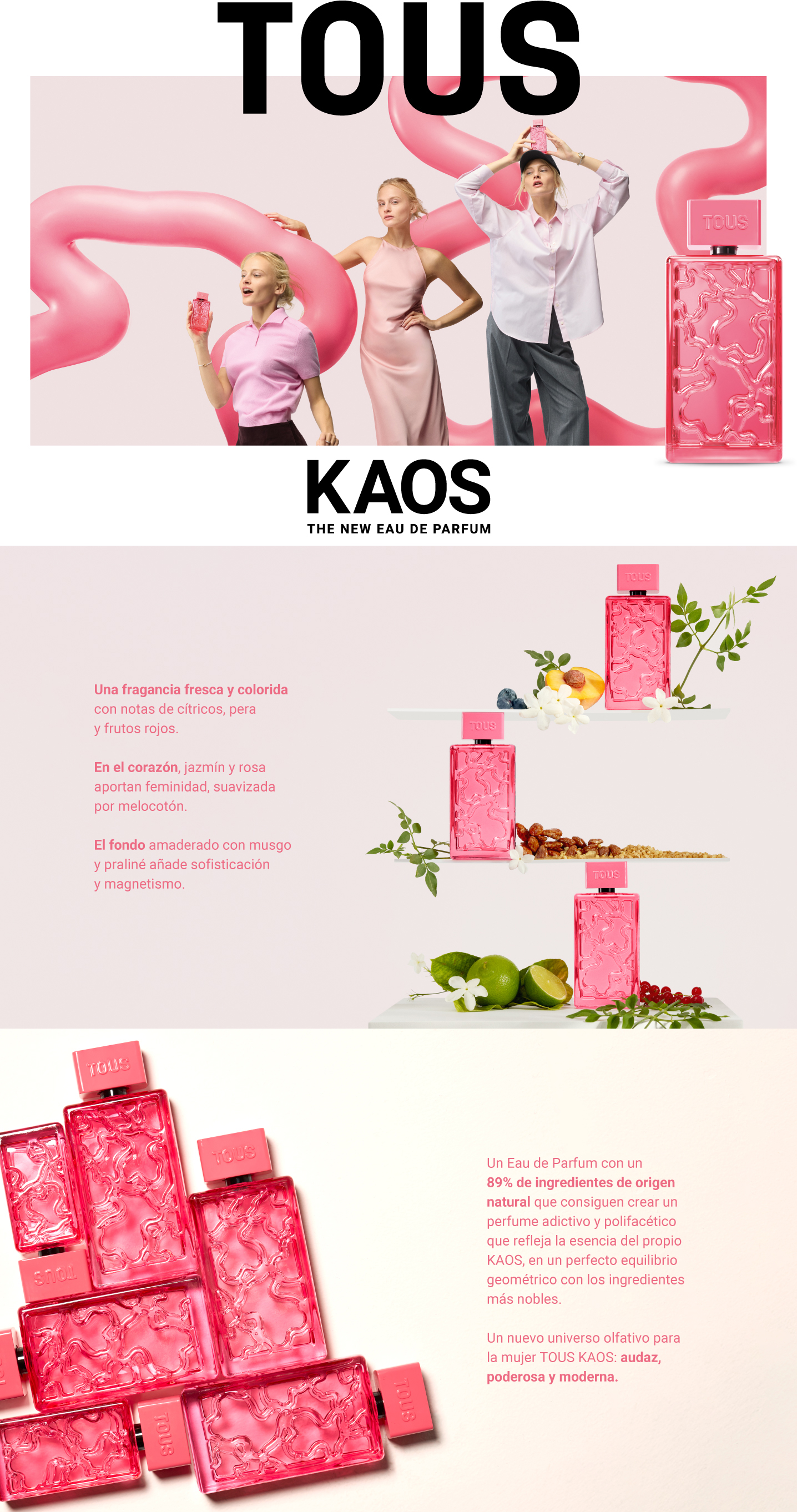 Tous kaos edp es una fragancia de la familia olfativa Amaderada Floral.
