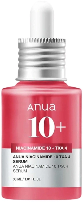 Anua Niacinamide 10% + TXA 4% Serum es un sérum potente diseñado para reducir eficazmente las manchas oscuras y el tono de piel desigual. Este sérum combina tres ingredientes clave: 10% de Niacinamida, 4% de Ácido Tranexámico (TXA) y 2% de Arbutina, que juntos actúan para aclarar la hiperpigmentación, cicatrices post-acné y manchas solares.