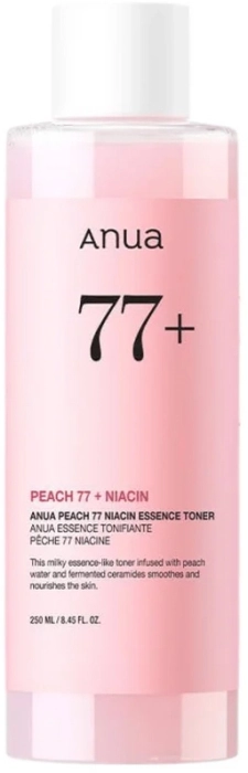 Anua Peach 77% Niacin Essence Toner está enriquecida con Niacinamida (Vitamina B3), conocida por sus numerosos beneficios para la piel, como la mejora de la textura cutánea, la reducción de las líneas de expresión, la disminución de los poros y un tono de piel más uniforme. La niacinamida también es eficaz para iluminar la piel y darle un brillo más radiante.