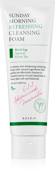 AXIS-Y Sunday Morning Refreshing Cleansing Foam es una espuma limpiadora facial que revitaliza e hidrata la piel sin despojarla de su humedad natural.